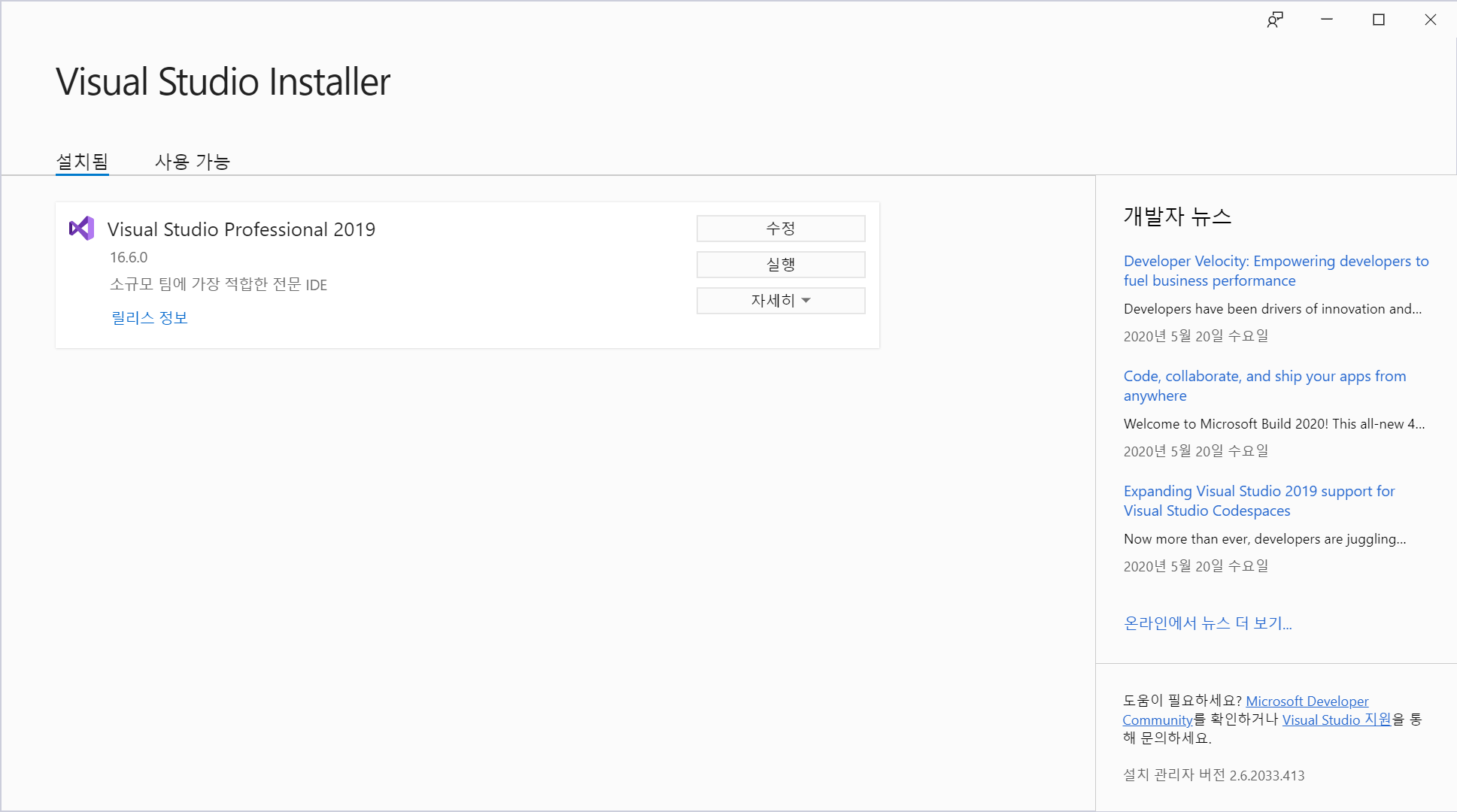 먼저 [Visual Studio Installer] 실행